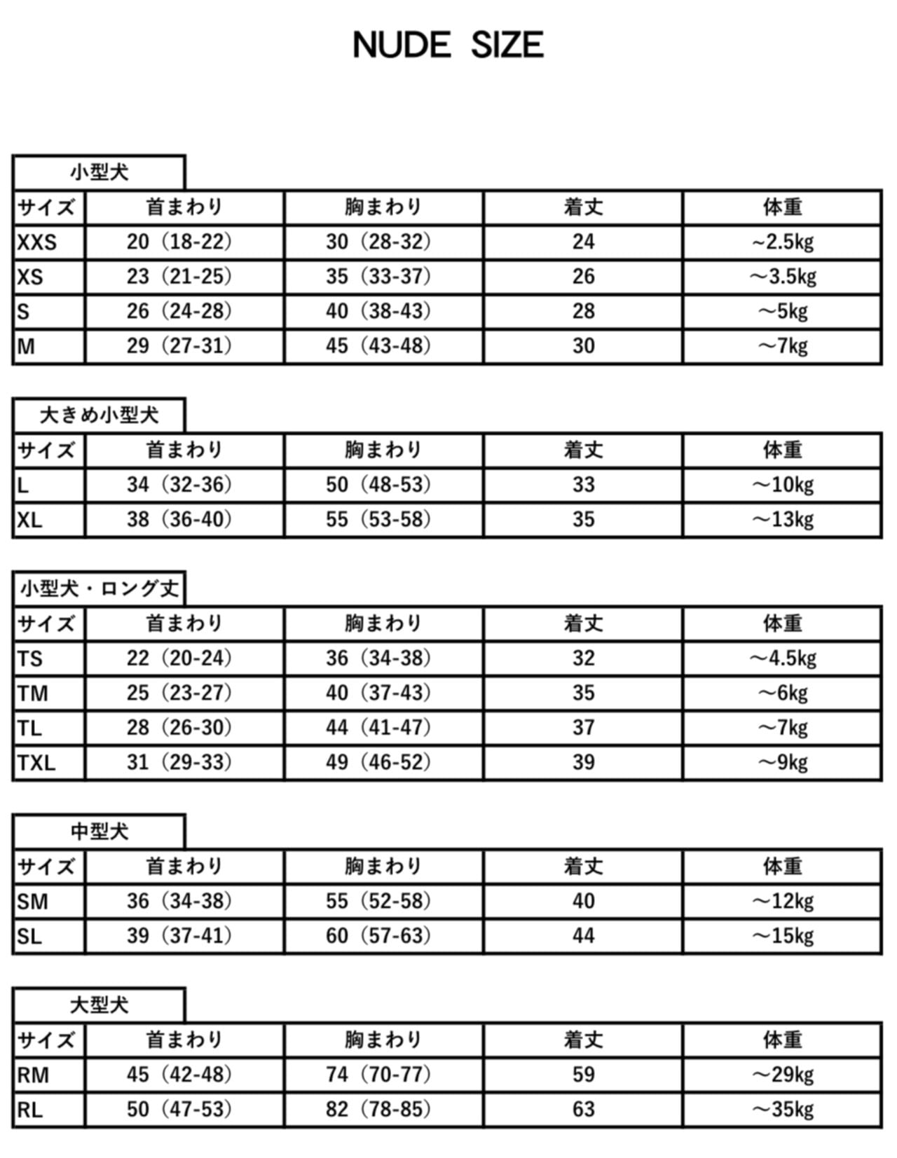 ※対象ヌードサイズとなり、出来上がりサイズとは異なります。