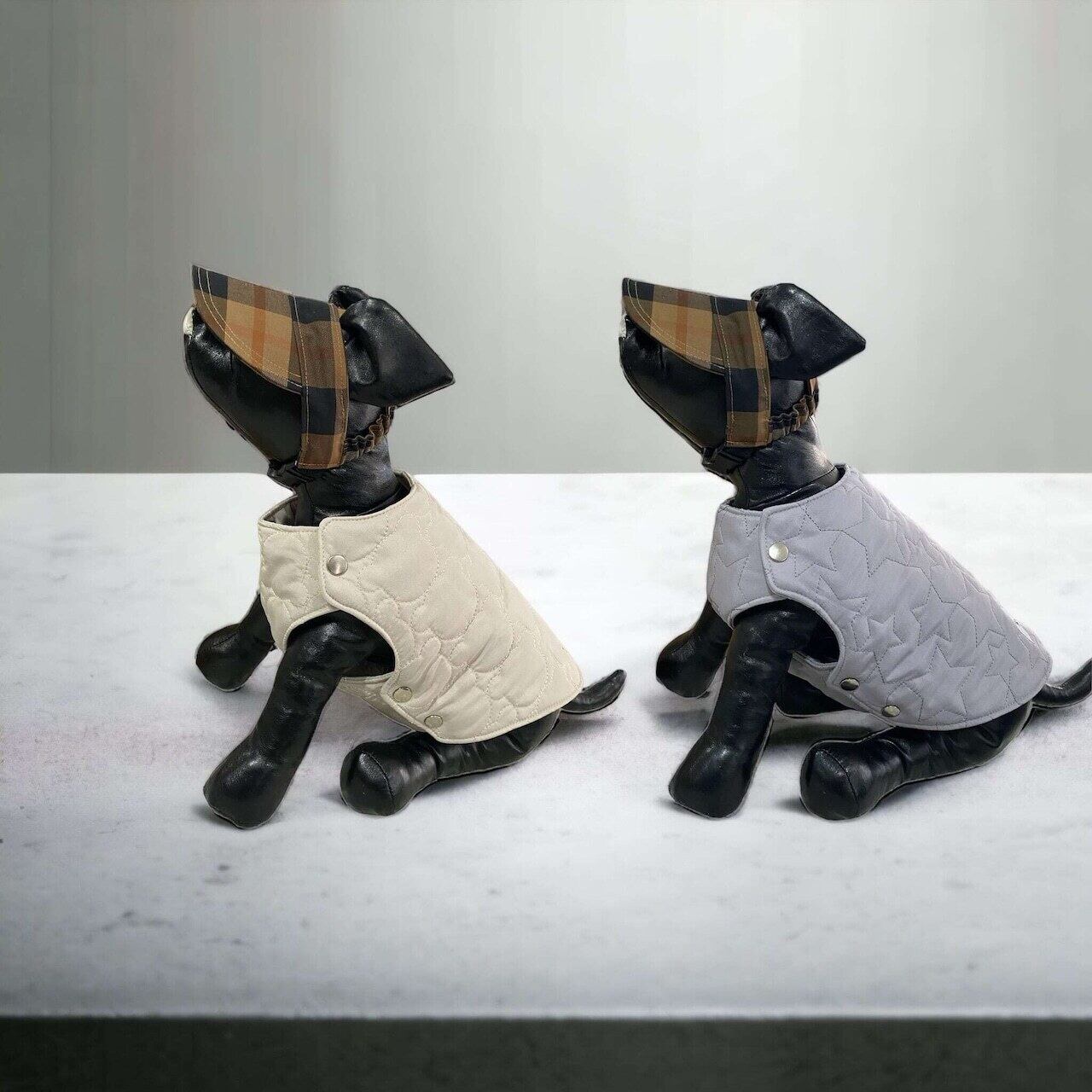(XLサイズのみ)キルティングベスト:ライトグレー星柄