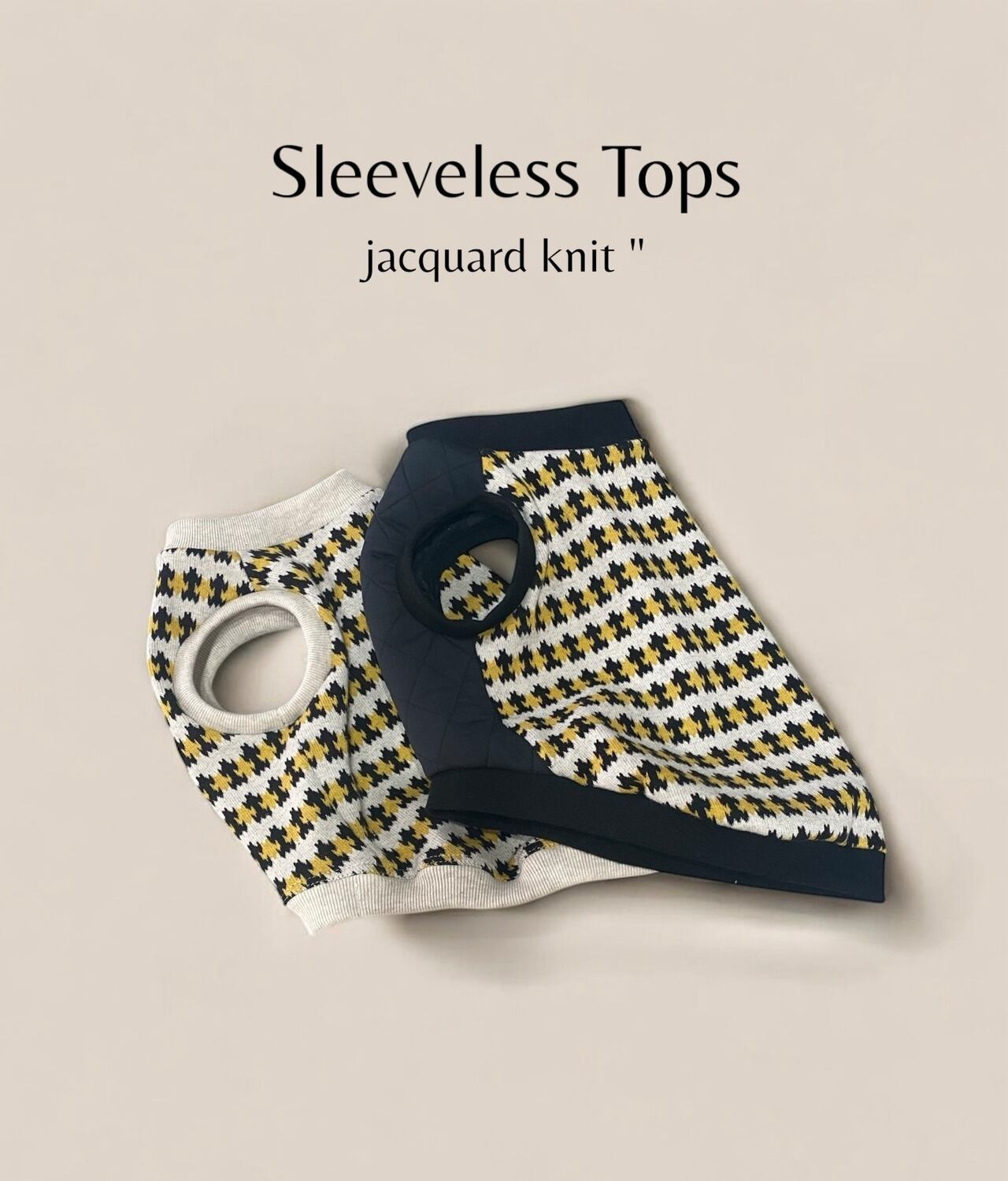 (Lサイズのみ)ジャガードニット:黒 スリーブレストップス