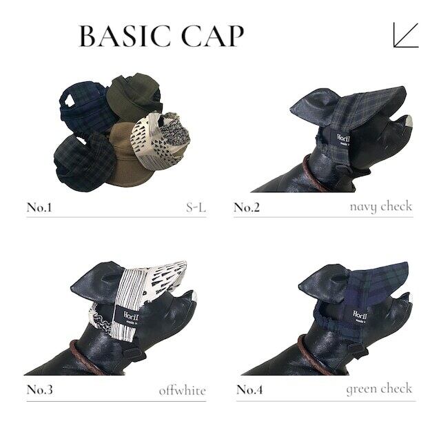 『ベーシックキャップ:ホワイト柄/グリーンチェック柄』