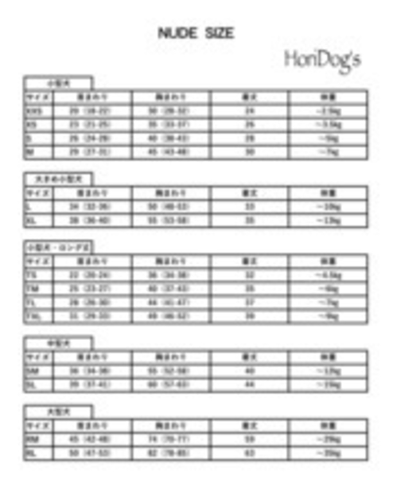 ※対象ヌードサイズとなり、出来上がりサイズとは異なります。