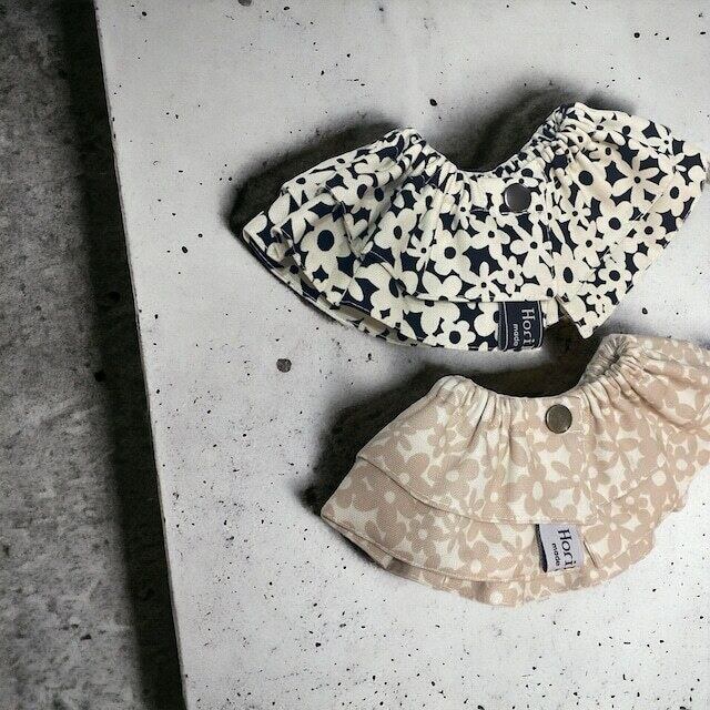 首回りはゴムで伸縮性あり。前後で着用いただける2Way仕様。